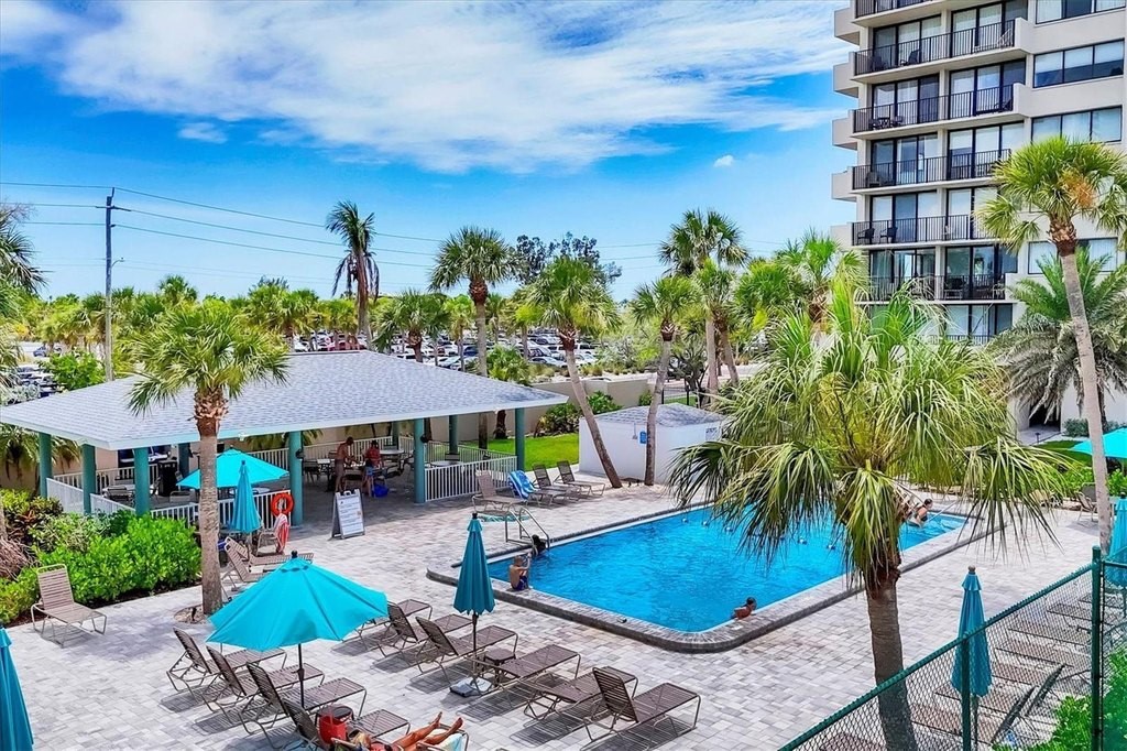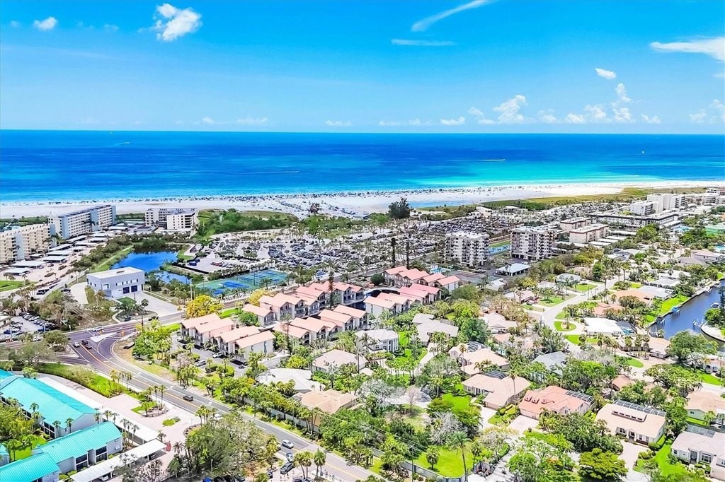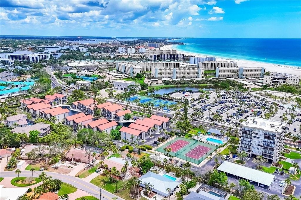 Discover this wonderful beach retreat and investment opportunity! Perfectly located in one of the most desirable locations in the community and just across the street from the soft, powdery sands of Siesta Key Public Beach ranked # 1 in the USA. This true split plan 2 -bedroom, 2-bath condo at Our House at the Beach offers the ideal setup for coastal living and rental potential. As you step inside the townhouse, you are greeted with high ceilings and bright open spaces. The eat-in kitchen is filled with natural light and connects seamlessly to the dining and living areas which open onto a spacious balcony for enjoying the gulf breezes and spectacular sunsets or winding down after a day at the beach. primary suite features a newly renovated bathroom with a walk-in shower, shaker-style vanity, generous closet space, and a private dressing area. This turnkey unit is sold fully furnished, including some fresh new pieces recently added by the owners. Currently used as an active rental on Airbnb and the rental community website. Weekly rentals are allowed and there is an on-site rental office which makes managing guests simple and convenient. The community offers resort style amenities including a heated swimming pool, two tennis courts, a pavilion with grilling stations. Your own private one-car garage with extra storage ensures there is no beach parking stress! Just load up your cart and head across the street to enjoy Siesta Key Beach, sand volleyball, pickleball & tennis, and Sunday Sunset Drum Circle. When you're ready to explore the island, there is easy access to the free Siesta Key trolley. You can explore the excellent local restaurants, bars, ice cream shops, boutiques, and grocery store which are only a short ride away. Whether you're looking for a beach getaway, an excellent income producing vacation rental, or a coastal home, this turnkey condo delivers the ultimate in comfort, convenience, and laid-back island lifestyle. Dont miss your chance to own a piece of paradise on Siesta Key.